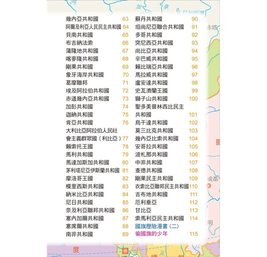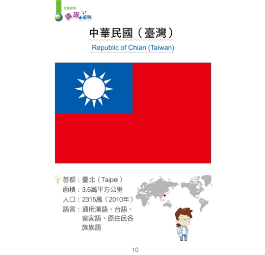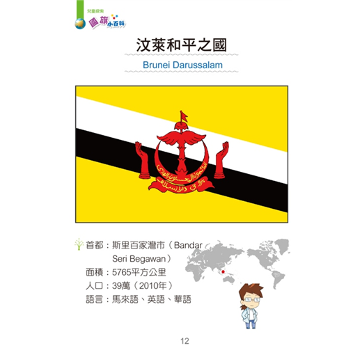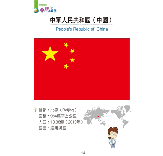 每個國家都有屬於自己的國旗,上面會有不同的顏色和圖形,代表著國家成長的不凡歷史以及各具意義的表徵,是人民心中的精神指標。本書介紹212個國家的國旗,以全彩圖案讓孩子清楚分辨國旗的不同特色,再以簡單地圖標示該國地理位置,對國家分布有基礎概念,並了解各國的首都、面積、人口和語言等基本資料。家長可陪著孩子一起閱讀,讓他們藉由美麗的國旗認識這個廣大的世界。