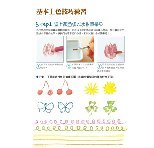 ◆每篇有重點教學,深入淺出介紹水性色鉛筆的應用技巧。