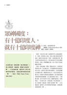 這本書是充滿知性難得一見的好書,精彩的插圖和第一手的相片,更添加了趣味性,如果你對印度文化有興趣,他將是你受用無窮、愛不釋手的床頭書。
