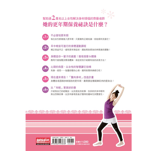 拯救了無數女性關於身體的煩惱、年屆52歳的作者,將以她自身的經驗,加上對於女性體態矯正的專業,告訴每個害怕更年期到來,或正受更年期症狀所苦的女性──更年期是讓人變漂亮的大好機會,讓自己保持好身材、更年輕有自信,一點都不難!