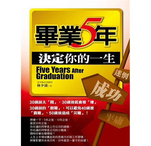 兩千多年前,孔子便這樣說道:「30 而立,40 不惑,50 而知天命……。」30 而立之說便成為自己是成功或者平庸一個非常重要的衡量尺度。看看周遭許多 30 歲左右的朋友說自己一事無成真讓人感慨不已!然而 30 而立是沒有固定的標準的。有的人有令人羡慕的事業,但感情卻一團糟;有的上班族雖然薪水不高,他卻非常喜愛自己的工作……,這都端賴自己對自己的定位與認知,「找到自己」才是你要做的、你該做的。所以畢業後的這五年將會是你人生中關鍵的五年。