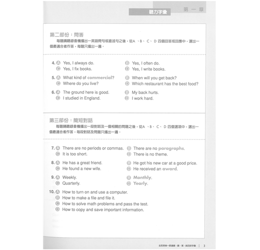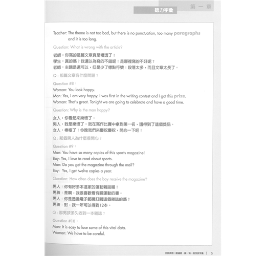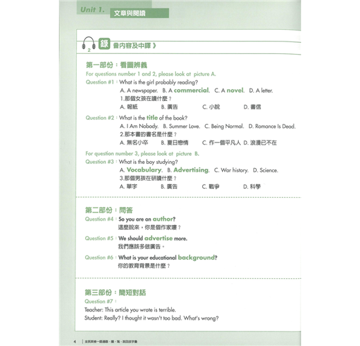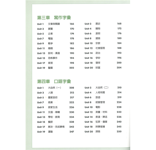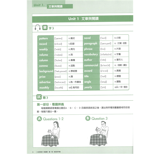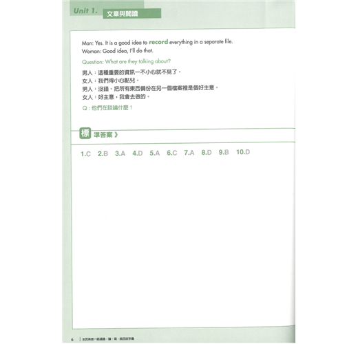 本套書後所附聽力配件為:MP3。(不適用一般音響)本書針對「全民英檢」聽、說、讀、寫四個方向按字的難易程度分配英語常用的單字,非常實用。學單字的目的在於使用,故在聽說讀寫中安排使用的主題單字,好記又好用。特別針對全民英檢聽說讀寫題型而編撰,讓學習者一邊記單字,一邊準備英檢考試,不但可以幫助學習者擴大字彙庫,同時增加學習者的實戰經驗。* 書中已附解答。
