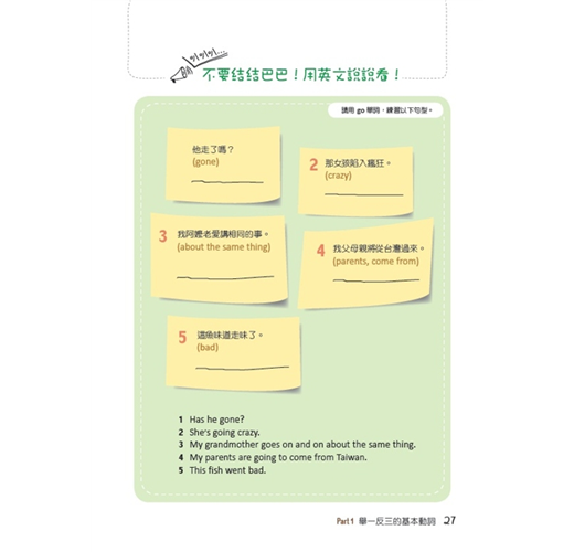 不要結結巴巴!用英文說說看! 請用 go 單詞,練習以下句型。