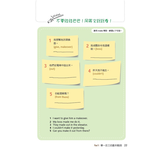 不要結結巴巴!用英文說說看! 請用 make 單詞,練習以下句型。