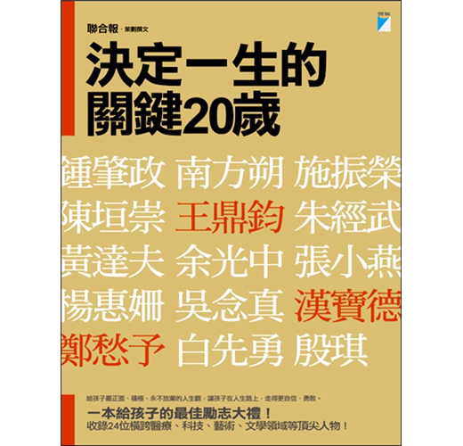 24位跨領域的不凡典範,透過聯合報資深採訪團隊,呈現出今年最感動人心的勵志傳記,也在不景氣的年代,給所有年輕人最需要的激勵與勇氣!