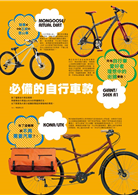 4. 時髦運動型車款介紹:配備規格雖然很重要,但是外型也不能馬虎,更要講究品牌知名度。本章將以車款外型作為介紹重點,推薦公路車、MTB、小徑車等車款,讓您騎著愛車時髦上街。