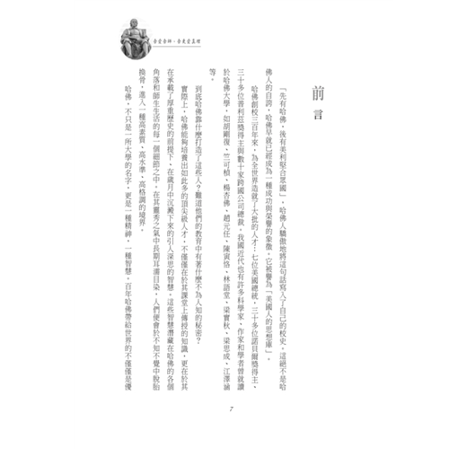 哈佛,不只是一所大學的名字,更是一種精神,一種智慧。百年哈佛帶給世界的不僅僅是優秀的人才,還有經典而深刻的人生哲學。哈佛已經成為很多年輕人夢想開始的地方。