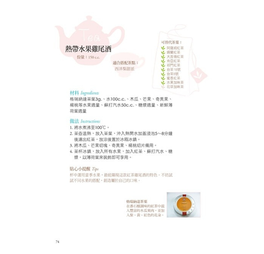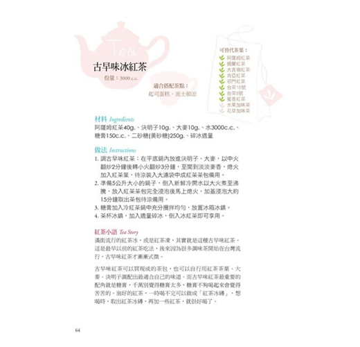輕鬆進入紅茶世界的入門書,書中介紹世界各地及台灣知名紅茶品種,並將各品種紅茶製作成可口又美味的紅茶飲品。專為紅茶新手設計,從最基礎的認識紅茶品種、沖泡原味紅茶、加味紅茶,到紅茶分級標準、有趣的各種茶具介紹等,讓紅茶初入門者和愛喝紅茶的人輕鬆走入紅茶世界。