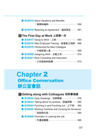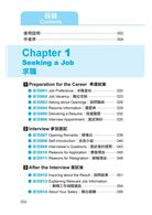 全書共分「求職」、「辦公室會話」、「日常工作」、「接待客人」、「社會交往」、「商務活動」、「各行各業」、「工作之餘」八大主題,涵蓋求職者及上班族面臨的各種情境。