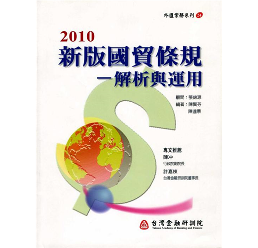 有鑑於新版國貿條規係採文字敘述,並無註解或實例加以說明,因此必須靠讀者自行閱讀後而揣摩其意旨,或靠組織內部傳承解說,再加以運用。為使企業界內部培訓時有一輔助書籍可參考,以迅速與國際實務接軌,本院乃推出「新版國貿條規--解析與運用」乙書供業界使用。本書內容涵蓋EXW、FCA、CPT、CIP、DAT、DAP、DDP、FAS、FOB、CFR及CIF等十一章,每一章闡述一種條規之修訂重點、風險之移轉、買賣雙方須承擔之成本或費用、買賣雙方之義務及案例解析等。本書為解讀或使用2010年版國貿條規之重要參考用書,對該領域之從業人員極具實用性,實為所有金融及工商企業外匯業務從業人員,及對外匯領域有興趣之大專院校國貿系所師生必備之工具書。