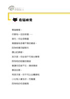 3. 作者曾經養貓,更愛貓,因此對於貓的動作、思考、行為模式觀察的入微,行諸於詩,看在同是愛貓人的眼中特別有感覺。搭配上作者手繪的各式貓圖,值得愛貓者、愛書者、愛詩人收藏。