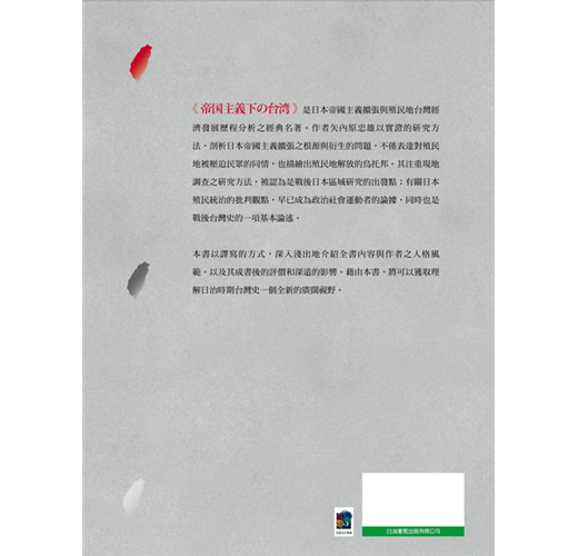 《帝國主義下の台灣》是日本帝國主義擴張與殖民地台灣經濟發展歷程分析之經典名著。作者矢內原忠雄以實證的研究方法,剖析日本帝國主義擴張之根源與衍生的問題,同時也表達對殖民地被壓迫民眾的深切同情。其注重現地調查之研究方法,被認為是戰後日本區域研究的出發點;有關日本殖民統治的批判觀點,早已成為政治社會運動者的論據,同時也是戰後台灣史的一項基本論述。本書以譯寫的方式,深入淺出地介紹全書內容與作者之人格風範,以及其成書後的評價和深遠的影響。藉由本書,將可以獲取理解日治時期台灣史一個全新的廣闊視野。