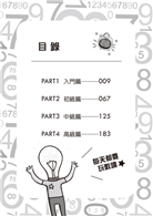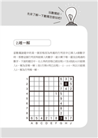 本書由台灣數獨協會專業出題,從最簡單的入門開始,到最難的高級程度,循序漸進,讓你從完全不知「數獨」為何物,到變成玩「數獨」高手。