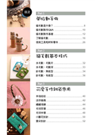 本書內容教你如何收集、處理、清洗、保存與使用貓毛,一次學會「針毛氈」與「水毛氈」兩種技巧,可因應作品想要呈現的感覺選擇適合的作法,只需要一根戳針,或是溫熱的肥皂水,就能隨心所欲塑造出想要的形狀。利用家中寶貝貓的毛製作雜貨小物,不論配色或造型都相當可愛討喜,而貓毛氈自然的氣息,就連貓咪也為之瘋狂。