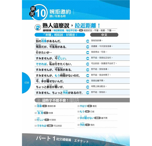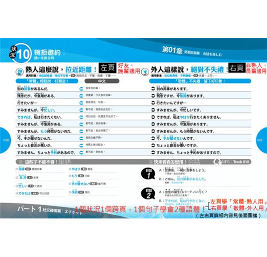 【左頁-學常體】 ●適用對象:地位較低者╱地位平行者。 EX:親朋好友、平輩、晚輩、下屬⋯⋯ | | 【右頁-學敬體】 ●適用對象:地位較高者╱不熟識者。 EX:長輩、上司⋯⋯ |