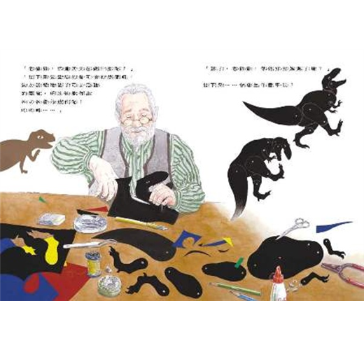 這是一個會讓人滿心期待「接下來會發什麼事呢?」的故事,尤其是老爺爺不停的剪紙,各式各樣的恐龍不斷被創造出來,隨著老爺爺喀嚓喀嚓的剪紙聲讀完故事後,兒子嚷著:「再唸一次!再唸一次!」這是一個讓喜歡生物的兒子打從心裡喜愛的恐龍故事。