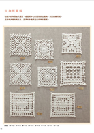 既使只有1塊圖樣也很棒。但只要接縫2、3塊圖樣,就能作出小墊布、披巾與手提包等。小型圖樣只要和穗飾與緣飾組合,就能作出小飾物、項鍊及套鍊等,使用方法非常自由多變,可無限延伸。當各位讀者在製作可豐富日常生活的作品時,參考本書,享受...