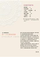 雖然小時候也曾用毛線和鉤針鉤織過鎖針,或製作過圖樣,但還是會覺得蕾絲鉤織是很困難的。這本書選出以簡單的鉤織方法就能製作的圖樣、穗飾、緣飾。樣品是使用2/0號鉤針製作,作品則是使 用3/0號以上的鉤針所作成。鉤織蕾絲鉤織時,請比鉤織毛線時,再將線拉緊一些,這樣就能鉤出更漂亮的作品。