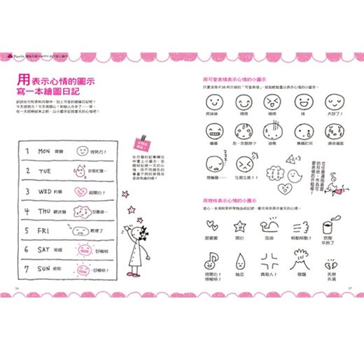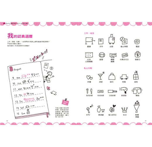 3. 附有大量圖例,並依心情、天氣、節慶和日常活動等分類,讓你不管是畫地圖、寫日記、記手帳、規劃旅遊行程……全都好好用!