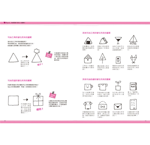 1. 圓形、三角形及四邊形,用最簡單的圖形排列組合,就能變身可愛插圖!