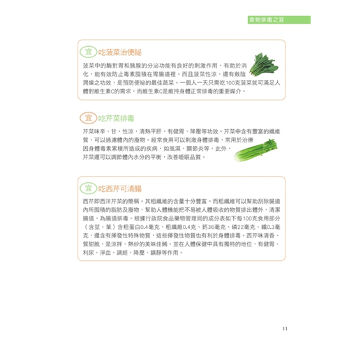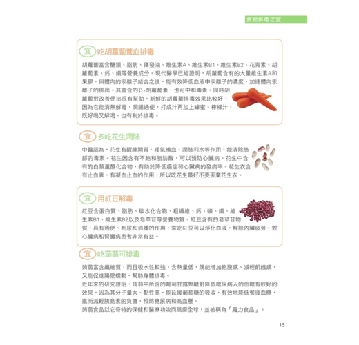 ● 淺顯易懂的文字,讓你清楚了解各種排毒方法。