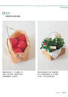 書中分為5個章節,為大家解說各種包裝的技巧手法,也帶入日本包裝精神「簡單.創意.環保」,並有簡單插畫圖示作法或是以照片說明步驟過程,多種利用隨手素材所完成的包裝範例,相信能提供你許多創意靈感。