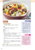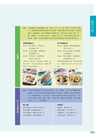 書內並特別提供近60道「早∕午∕晚餐的食譜示範」,配合季節性調整,病友可依需求選用適當食譜,也可自行變化交換同屬性食譜如主食替換、配食替換,補充體力及免疫力。