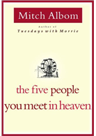 Eddie is a wounded war veteran, an old man who has lived, in his mind, an uninspired life. His job is fixing rides at a seaside amusement park. On his 83rd birthday, a tragic accident kills him as he tries to save a little girl from a falling cart. He awakes in the afterlife, where he learns that heaven is not a destination. It’s a place where your life is explained to you by five people, some of whom you knew, others who may have been strangers. One by one, from childhood to soldier to old age, Eddie’s five people revisit their connections to him on earth, illuminating the mysteries of his ”meaningless” life, and revealing the haunting secret behind the eternal question: ”Why was I here?”