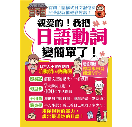 正因為書中有豐富的例句,當然需要MP3來輔助讀者們對日文聽力的練習,並訓練日文的語感以及敏銳度,讓所學習到動詞能輕易地運用出來。