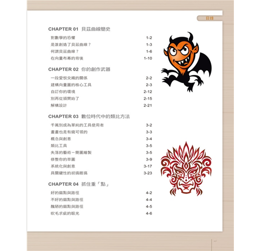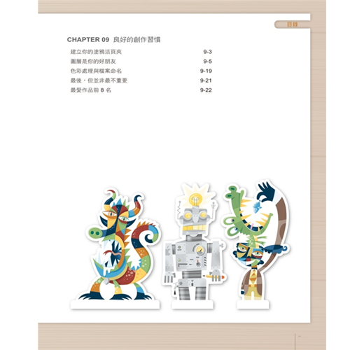 「本書就像是個好朋友般,親切地告訴您並為您示範如何輕鬆揭開向量圖創作的神秘面紗。而這一路上您還能收集到許許多多有關手繪、設計及改善創作流程的實用技巧。」