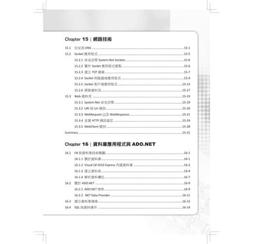 ● .NET平台應用程式開發:通用類別庫,I/O、網路、繪圖以及資料庫程式設計等進階應用程式設計議題。