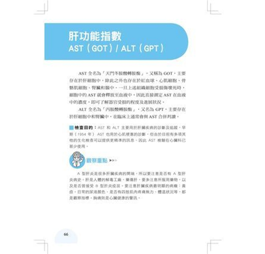 我們體內有上百個指數,每個數字都是健康的密碼,從它們可以看出身體運作是否正常,了解越多數字的意義,掌握越多徵兆,就越能擁抱健康。如果你只注意三高,容易忽略其他警訊,成為危險族群。例如: