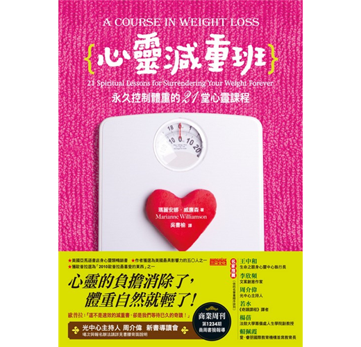 《心靈減重班》此書作者卻語出驚人地認為,減肥必須從更深層的地方下手,真正的文明病不是只有身體肥胖,心臟病或癌症,而是心靈的寂寞,憂鬱與孤立。本書作者瑪麗安娜.威廉森是美國知名心靈療癒暢銷作家,還曾被選為最有影響力的五○個名人。她認為,人身上的重量不斷增加,其實跟人心靈的空虛與缺乏愛,息息相關。