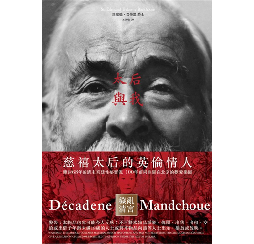 鮑先生寡言,江迅大哥素來話不多,我們仨走進一靜巷裡茶餐廳旁的桌位(這就是他所謂的「吸菸者的天堂」?)頂上一棵老榕濃蔭覆蔽,確實無比幽靜,江說他平日得空便是在此看書寫稿。我們各自掏菸出來愜意地抽著。這時鮑先生從他的背包裡拿出兩本用膠膜封住的新書,一本給江,一本給我,說是他最近出的一本回憶錄:《太后與我》。作者是埃蒙德‧特拉內‧巴恪思爵士,他祖上是英國顯赫的奎克家族。這個人是個怪人,他是個同性戀,也是個語言天才,會法語、拉丁語、俄語、希臘語、日語,他一八九八年來到北京,不到一年便熟練北京的中文。這個人曾和另一位《泰晤士報》的記者布蘭德,合作寫了一本《太后統治下的中國》,此書在當時非常轟動,據說他在義和團暴動的混亂中,發現了一份「景善日記」。之後,他們又合著了《北京宮廷回憶錄》,很長一段時間西方學術界欲研究、理解晚清太后統治的歷史現場還原,幾乎是必要引用的資料。但是在一九七六年,有個叫特雷弗羅珀的傢伙,出了一本《北京隱士》,整個把已過世幾十年的巴恪思的人格、著作、他所有作品的真實性,全打入地獄。包括那本神祕的「景善日記」,也是偽造的。而特雷弗羅珀在書中,更提到巴恪思在臨終前一年完成的自傳體著作《往日已逝》與《太后與我》(就是我們手中那剛出爐的中譯本),簡直是傷風敗俗之淫書,作為一個歐洲男同性戀,整本書鉅細靡遺寫他到了中國,在北京男妓館和諸多中國男妓淫蕩性愛的故事。更驚人的是,這本《太后與我》揭祕了巴恪思在三十多歲時,被祕宣進宮,成為慈禧太后的性寵物的往事,大量栩栩如生的細節。特雷弗羅珀以他在史學界的權威,將巴恪思和他的作品定調:「這轟動一時的自傳,不過是一部色情小說而已……無論文筆如何有才情,也無法掩蓋這種病態的淫蕩,它們不過是一個自閉的同性戀的淫穢想像,是他壓抑扭曲的性欲的最後發洩……」