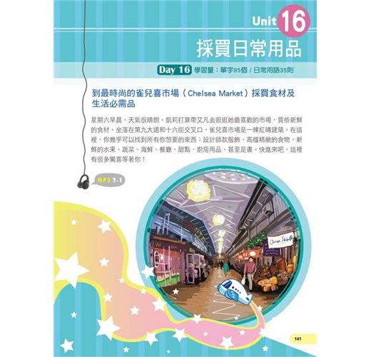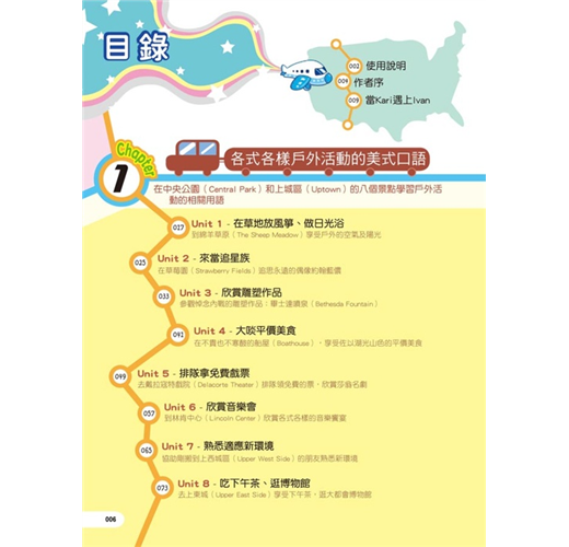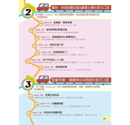 嚴選29個紐約特色景點,帶出29個不同日常生活情境,從點餐、用餐、購物,乃至參與戶外活動或節日慶典,甚至現場看比賽,日常生活中所有大小情境,都完整收錄。讓你一年365天,天天脫口而出道地美式口語。
