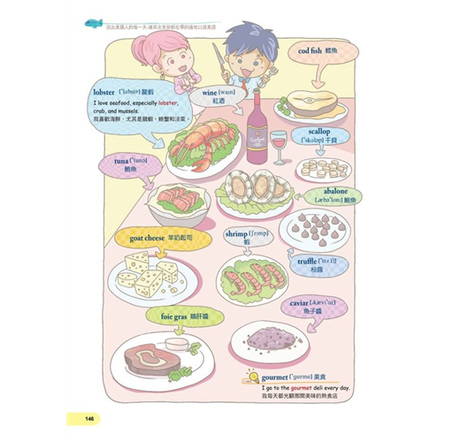 「說出美國人的每一天──連英文老師都在學的道地口語美語」將書中所有的日常生活情境,及相關延伸單字和用語,化為虛擬實境的漫畫,幫助你百分百融入該場景,宛如模擬實戰教學,什麼場合要說什麼話,一目瞭然、過目不忘,如何靈活運用更是難不倒你!