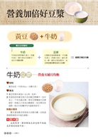 2. 針對不同的症狀,打造豆漿養生配方,健脾胃、護心、保肝、補腎、潤肺、補氣、去火、抗老化、緩解疲勞…,都有豆漿搭配五穀,幫你調整好體質。