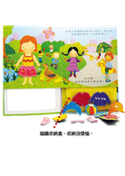在公園、游泳池、雨中和化裝舞會上應該穿什麼衣服才對呢?快來幫書中的四位小朋友設計他們的造型吧!你有15片漂亮的磁鐵衣褲、帽子、鞋子,任你拼湊把玩。