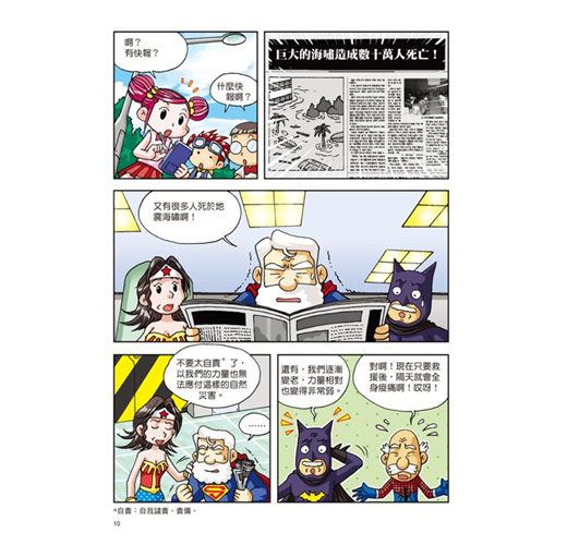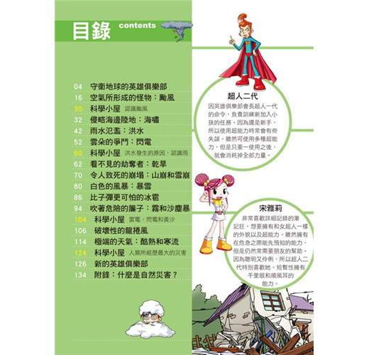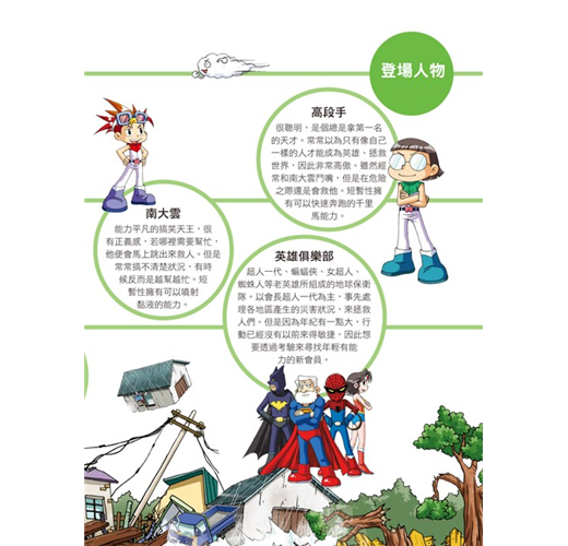 ●探討兒童最需要了解的各種自然災害,從漫畫人物的對話中,深入情境