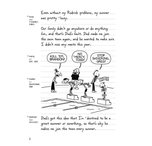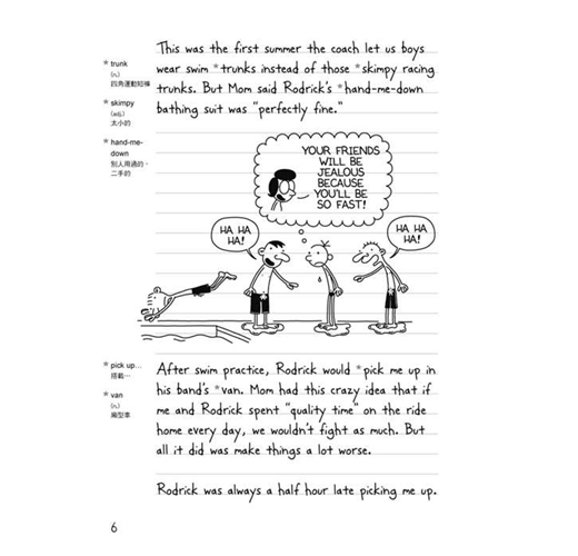 闔上第一集的那一刻,心中有絲不捨的感覺,因為書中生活化的美式英文以及可愛的插圖已經令人完全融入葛瑞的生活,彷彿置身於美國的校園裡。這是一本難得的讀物,它成功地營造出authentic的氛圍,讓讀者可以完全沉浸於美國校園的生活情境,並且體驗一個中學生的世界。本書簡潔、幽默、生活化的英文不但讓讀者可以讀出趣味,更可以自然、輕鬆地學習到時下有趣且實用的英文,除達閱讀之效益外,同時亦可增進口語表達能力。