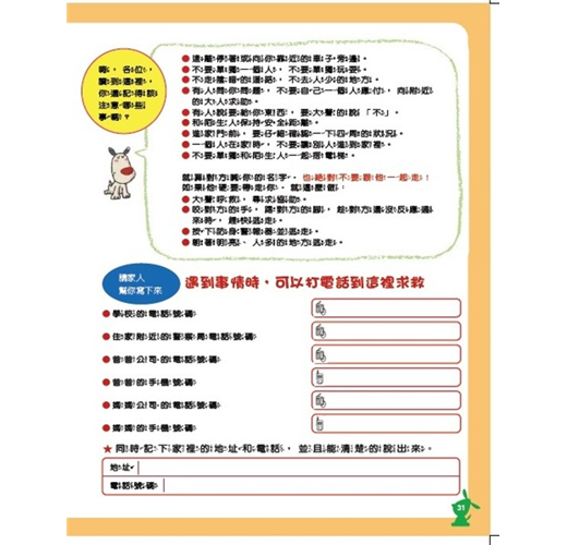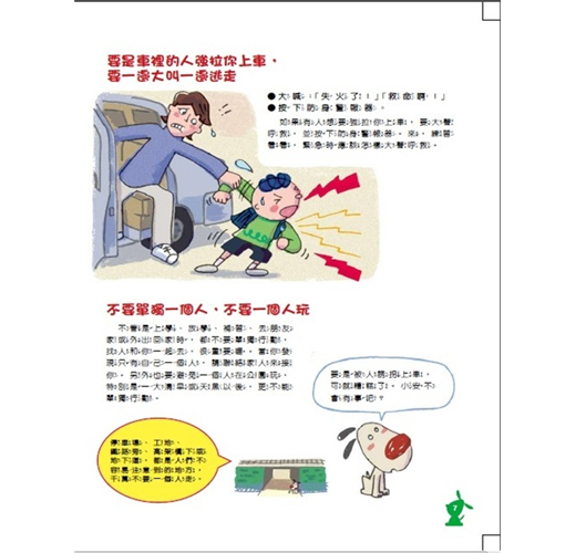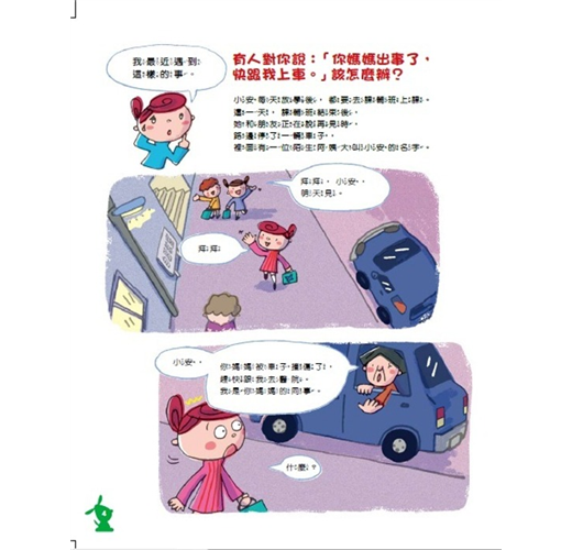 附有活動設計,可以藉由活動的進行,實際練習如何遠離誘拐、綁架;