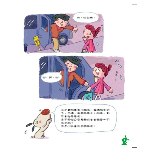 以角色對話的方式,將許多孩子可能會遭遇的危險和犯人常用的手法,