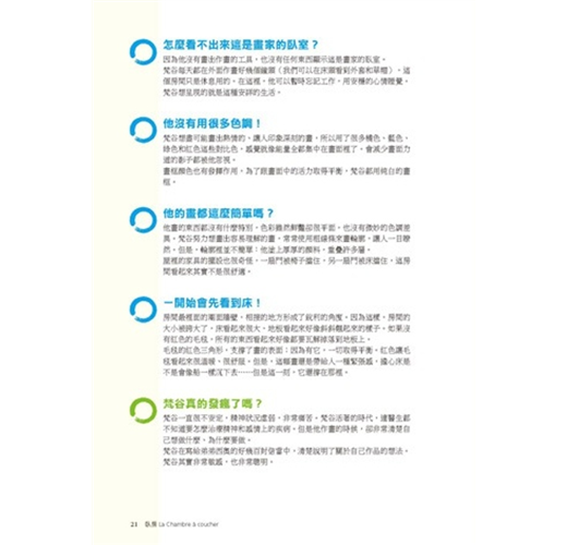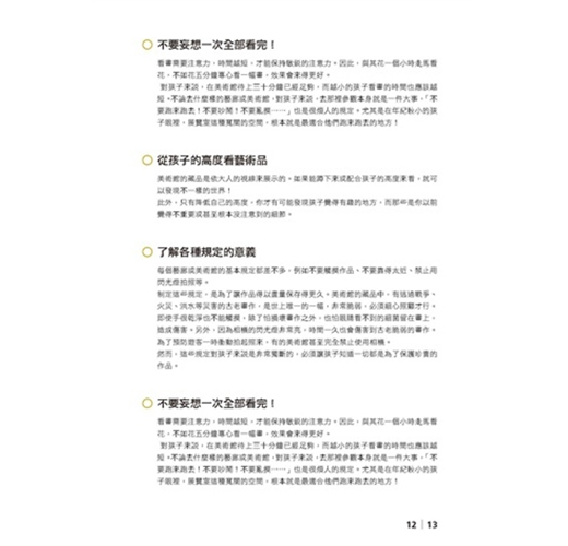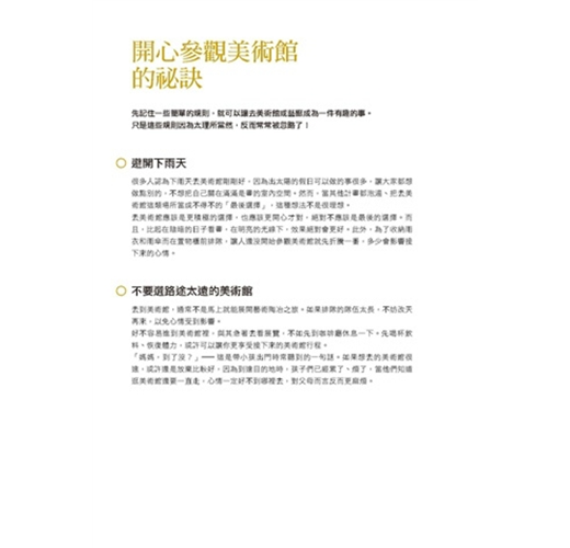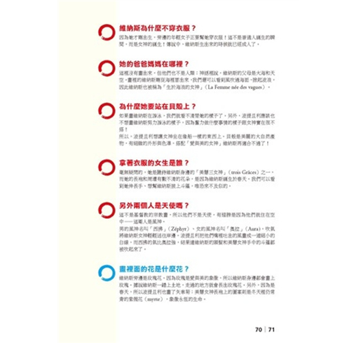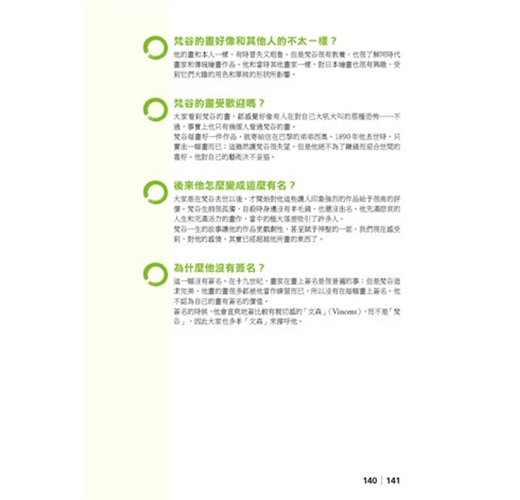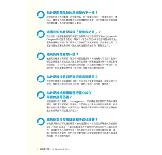 從另一個角度來看,這些也是非常適合用來引導孩子進入藝術世界、從小為藝術素養紮根的問題,即使做父母的完全不懂藝術,也可以跟孩子一起發掘藝術欣賞的樂趣,從此再也不用害怕孩子天真無邪又切中要害的問題!