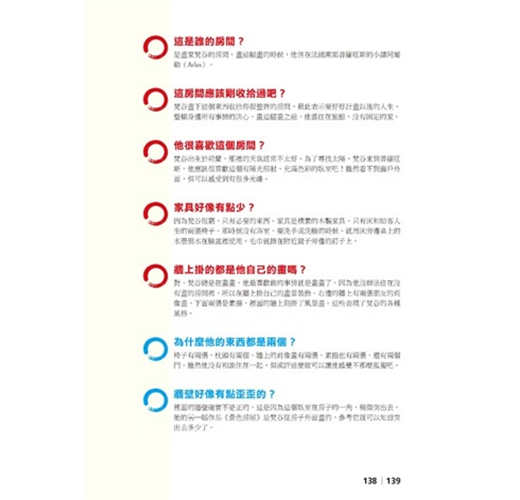 ◎隨心所欲、隨看隨懂1.收錄30幅散布世界各博物館的世界名作,每幅畫作透過分為三種程度、共15~17個的問題,