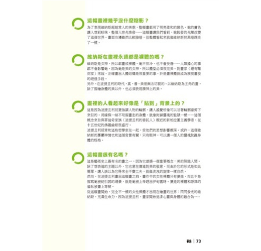 ◎不需要具備任何藝術史基礎1.提供藝術欣賞所需的線索,讀者完全不必具備藝術或歷史知識。