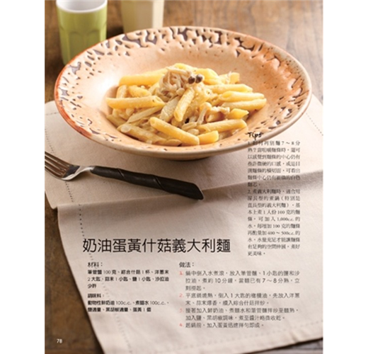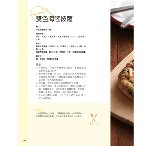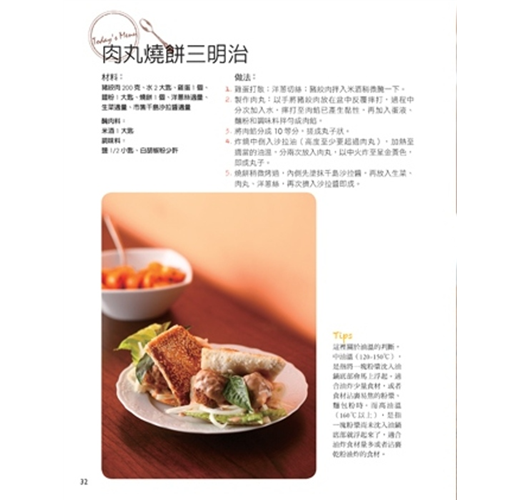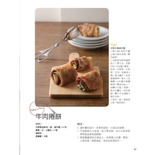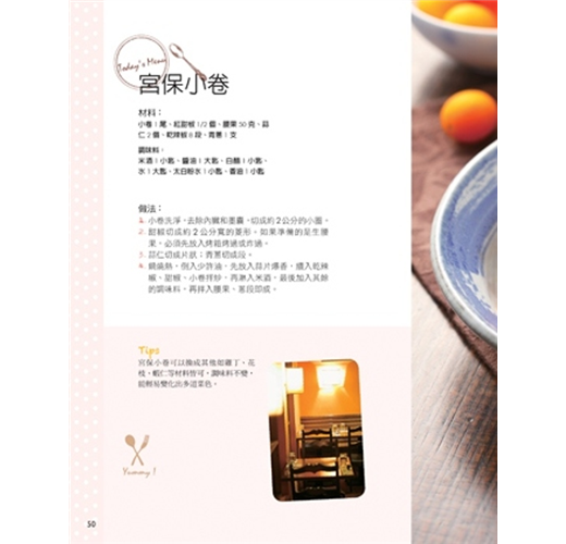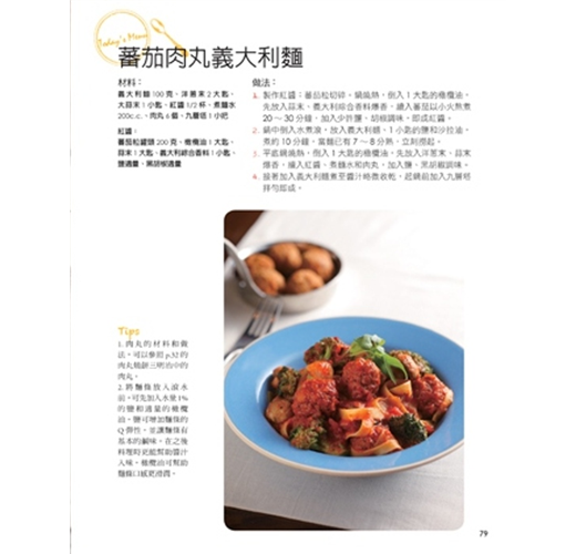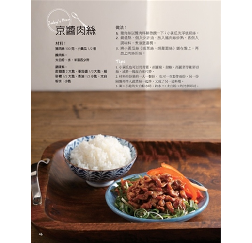 針對忙碌的人設計,只要少少的食材+短短的時間,善用平底鍋、湯鍋、小烤箱,就能完成你以為很難的料理,有可以當作早餐的西班牙蔬菜蛋餅、肉丸燒餅三明治、法國吐司、吐司披薩;中餐和晚餐的好菜宮保小卷、蒜泥白肉、馬鈴薯魚餅等等。