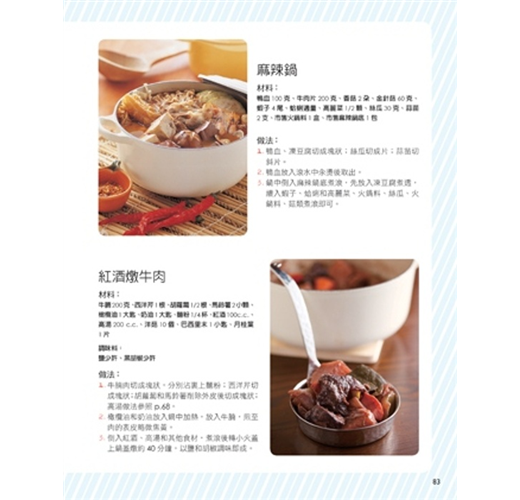 辛勤工作下班後更需要好好的犒賞自己的胃,這時最需要份量足夠的主食囉!麻婆豆腐蓋飯、牛丼飯、港式燒臘煲飯、沙茶羊肉炒麵、蕃茄肉丸義大利麵等,其中,更不乏可以招待偶爾來訪朋友的西班牙海鮮飯、炒年糕、餛飩雙吃等料理,讓你在家吃飽喝足。