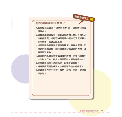 感冒、扁桃腺發炎、食慾不振、嘔吐、腹瀉、脹氣、便秘、胃酸過多、腎結石、吐奶、蕁麻疹、眼睛癢、鼻竇發炎、尿布疹、皮膚紅疹、皮膚搔癢、口腔潰瘍、腸病毒、水痘、麻疹、驚嚇、盜汗、啼哭不止、睡眠不安穩、沈睡不醒