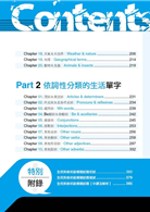 本書單字出自教育部公布國中小必備2000字詞,並符合全民英檢初級單字出題範圍,因此特別收錄「英檢初級模擬試題 + 解析」,讓學習者不但學會生活單字,同時培養英檢應試能力,幫你輕鬆跨過英文證照的初階門檻。