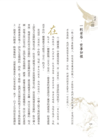 ●中華民族的大歷史觀 馬老師妙語生花帶領讀者進入中國浩瀚文化,中國的《易經》與《本草綱目》都在講人體小宇宙的原理,《易經》說乾坤是陰陽變化的起始,《本草綱目》告訴我們陰陽不調人體才會生病。中國人政教不會衝突的原因是什麼?因為儒家思想不是宗教,中國人遵從的是仁義禮智。而且掌管中國政治的主要是仕人,仕人文化是「先天下之憂而憂」,以德服人,以文教民,不若西洋以海盜方式擴張國土。